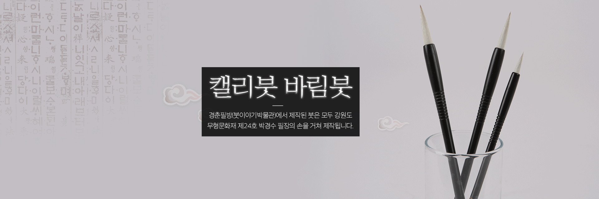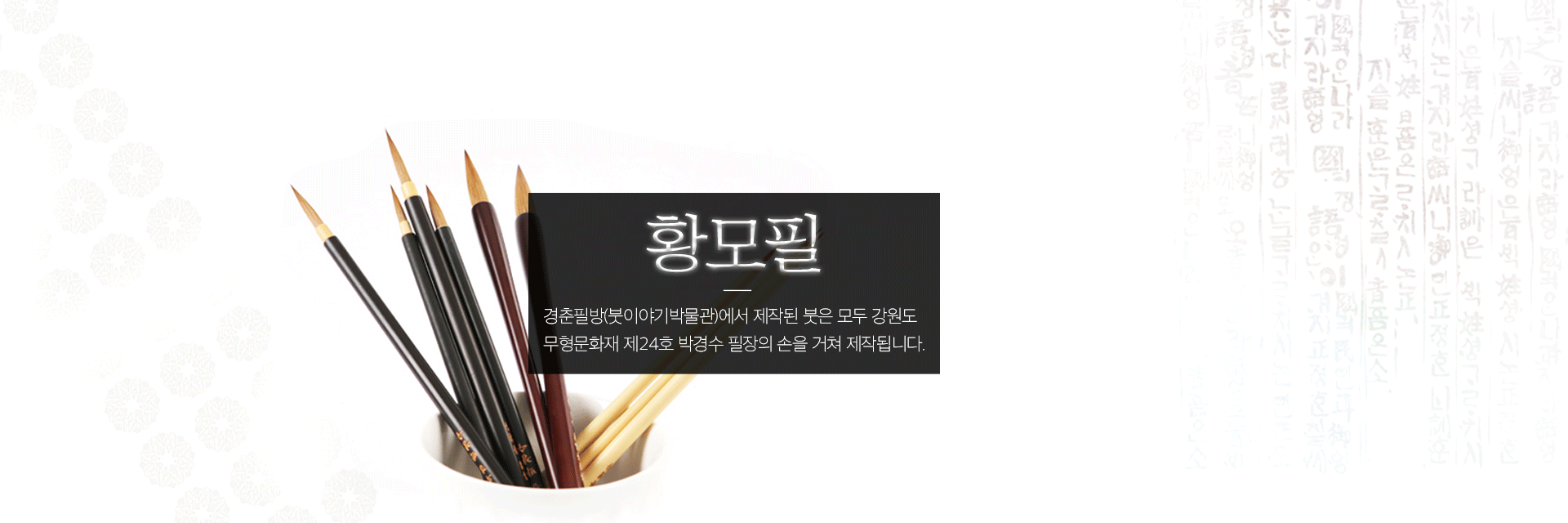 모든 붓은 강원도 무형문화재 박경수 필장의 손을 거쳐 제작됩니다.